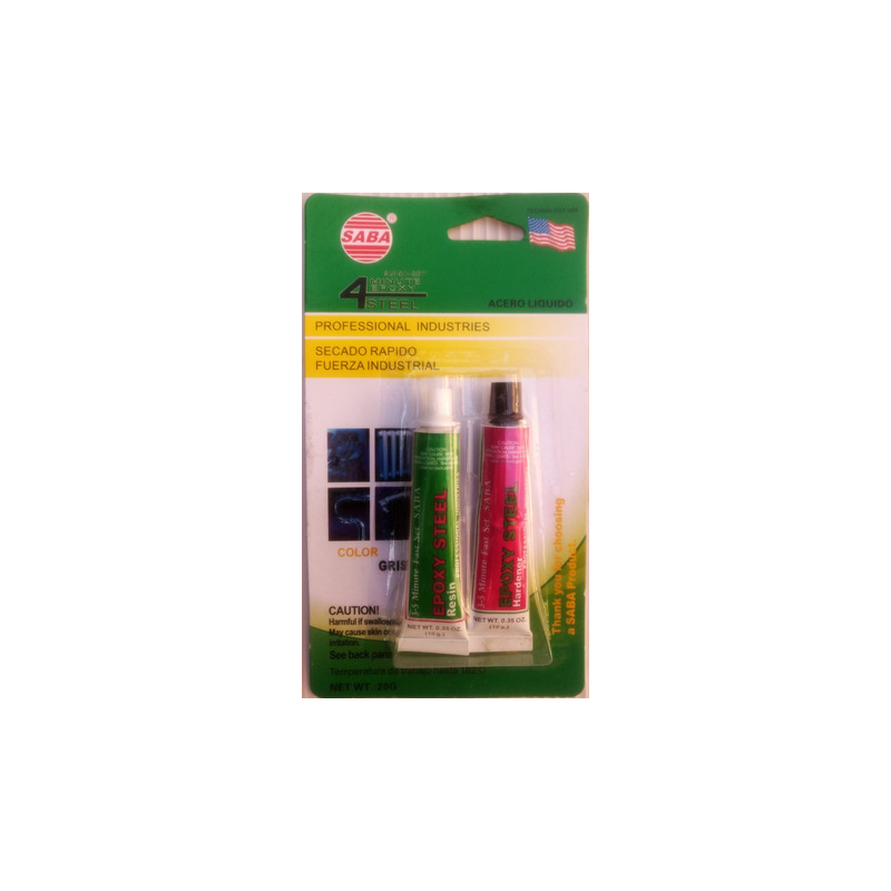 Adhesivo acero liquido, color gris, pega y sella como acero, ideal para radiadores y estanques de combustibles, endurece en 4 minutos.