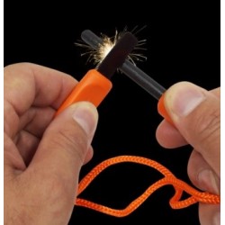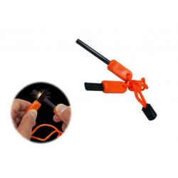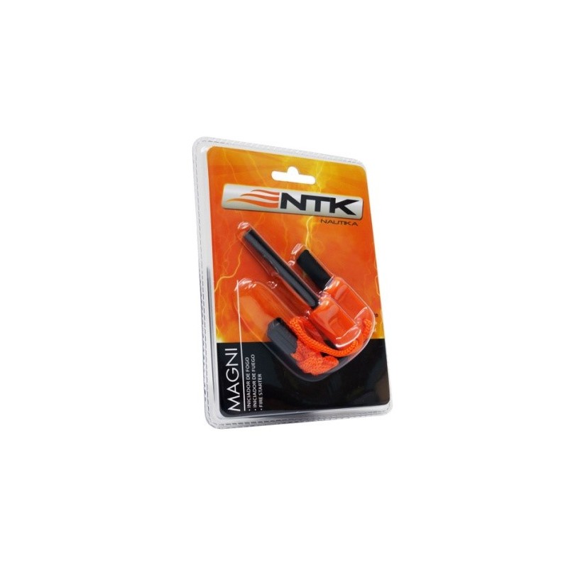 Posee pequeña placa metálica para raspar la barra y generar fuego.