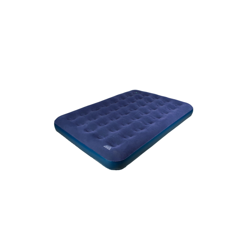 Colchón cama tamaño doble con inflador de espuma incorporado, que permite inflarlo con el pie. Gracias a su construcción de cilindros de aire y superficie aterciopelada, ofrece mayor comodidad, estabilidad y resistencia al peso del cuerpo.
